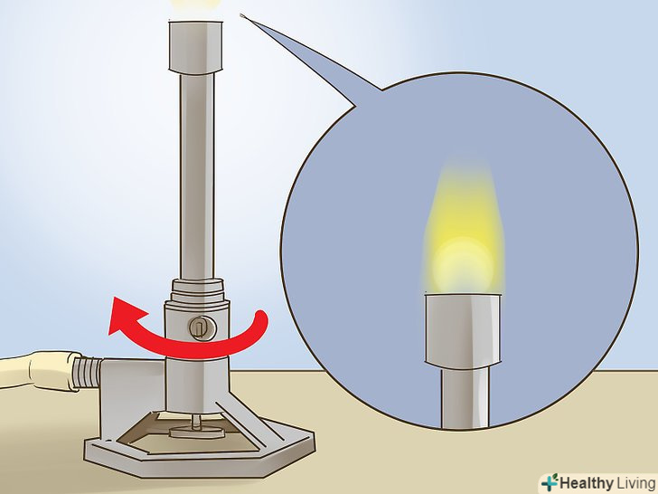 Закрийте отвори подачі повітря, щоб отримати холодне полум'я.якщо пальник дає гаряче синє полум'я, поверніть втулку, щоб перекрити потік повітря і отримати безпечне жовте полум'я.[17]