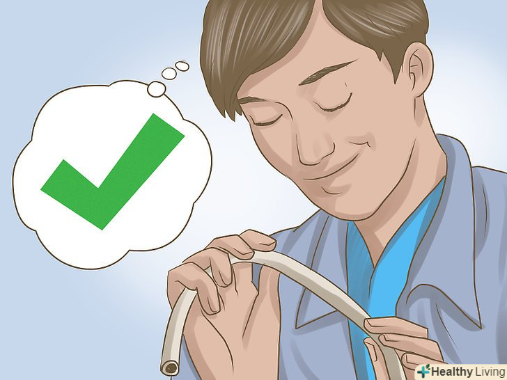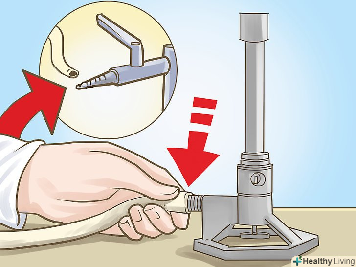 Перевірте шланг подачі газу, перш ніж підключати пальник.переконайтеся, що в трубці подачі газу (зазвичай це тонкий гумовий шланг) немає тріщин. Злегка стисніть шланг по всій довжині і уважно подивіться, чи немає в ньому видимих тріщин. Якщо ви виявите тріщини, візьміть новий шланг або зверніться за допомогою до керівника лабораторних робіт.[6]