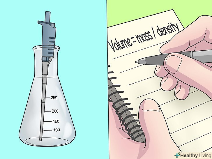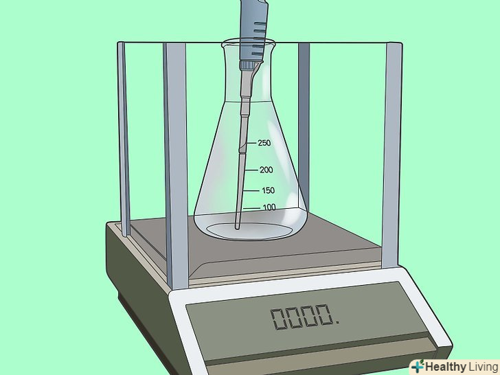 Використовуйте наповнювач для піпеток: за допомогою наповнювача залийте в піпетку воду з колби. Вилийте воду з піпетки в колбу і знову зважте її вже з водою. Запишіть різницю мас колби і обчисліть масу води, залитої в неї з піпетки. Повторіть вимірювання ще три рази.