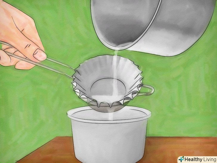 Використовуйте марлю або фільтр для кави, щоб відфільтрувати воду.перелийте відфільтровану рідину в іншу ємність.