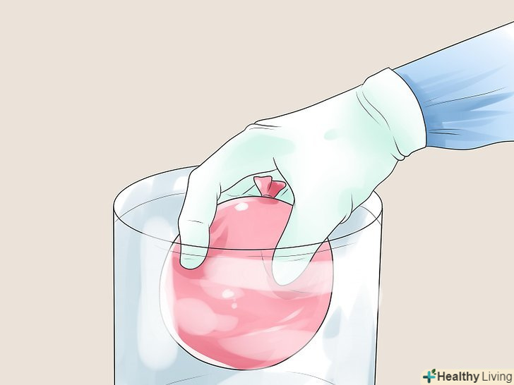 Опустіть в низькотемпературний спирт невелику повітряну кулю, щоб зробити «рідке повітря».Візьміть маленький повітряну кульку, який майже цілком поміститься у вашій ємності зі спиртом. Одягніть рукавички і занурте його в спирт. Кулька почне зменшуватися в розмірах, і ви побачите рідина всередині нього.[7]- Щоб перетворити "рідке повітря" назад в газ, помістіть кульку в тепле місце і трохи почекайте. Незабаром він почне розширюватися.
