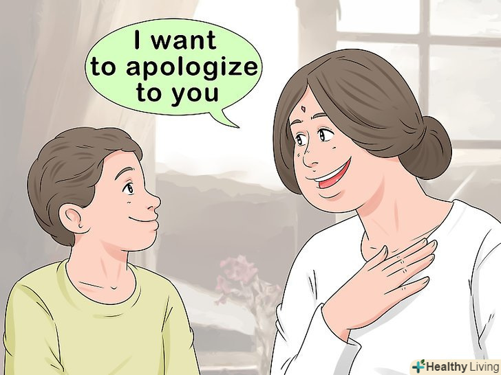 Визнайте помилки і приносите вибачення.Будьте сміливою мамою, яка розуміє свою недосконалість і визнає недоліки. Так ви навчите дітей не соромитися своїх помилок, а також визнавати проступки і виправляти ситуацію.[14]- Наприклад, якщо ви випадково порівняли дитину з братом, визнайте свою неправоту словами «Женя, я хочу вибачитися перед тобою. Вчора я порівняла тебе з братом, а так робити не слід. Ви обидва унікальні особистості. Ти мене пробачиш?».
