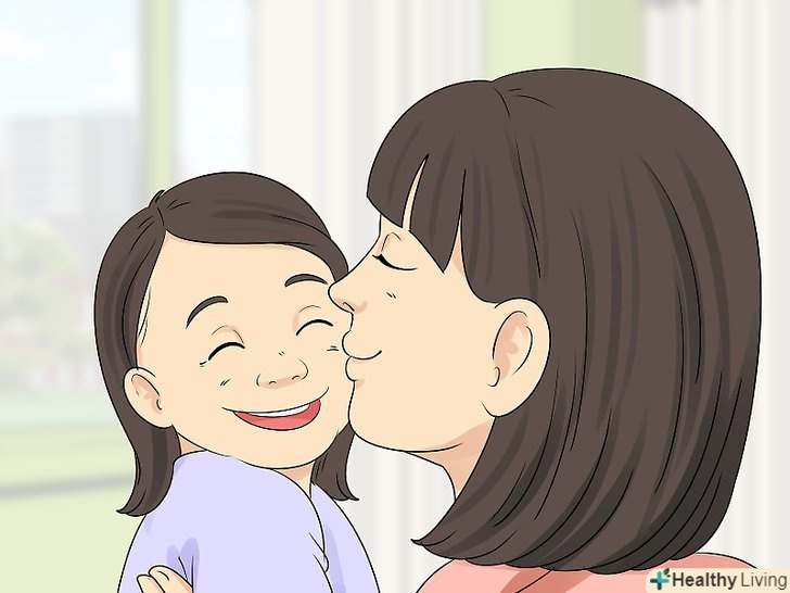 Часто показуйте свою любов.Щедро проявляйте свою любов у формі обіймів, поцілунків і підтверджень. Так ви покажете дитині, що ваша любов носить безумовний характер. Дане ставлення корисно для самооцінки дітей, хорошої успішності, правильної поведінки, плюс зміцнення відносин між вами.[5]- Переконайтеся, що більшість ваших взаємодій мають позитивну, турботливий форму. Намагайтеся щодня проявляти свою любов.