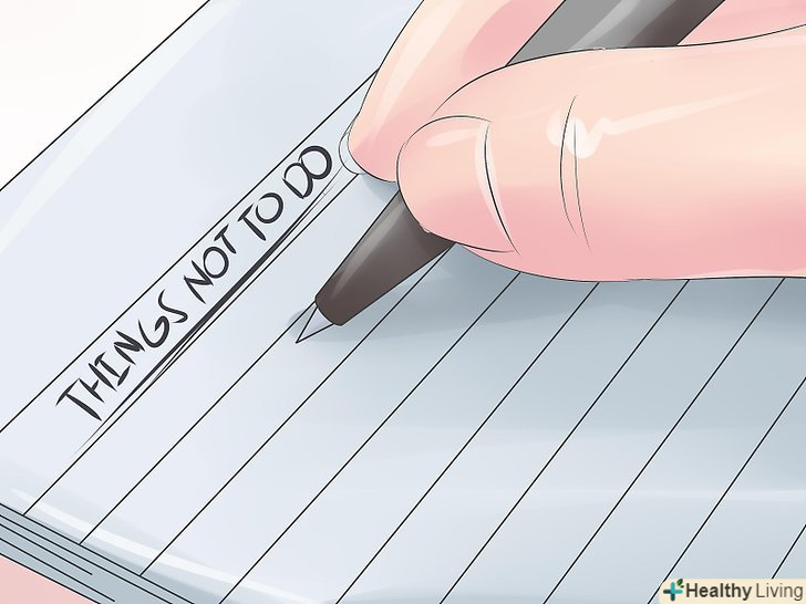 Напишіть свій список того, що варто перестати робити.[5] багато хто робить те, що їм здається, вони повинні робити, а не те, чого їм хочеться. Часто те, що, як вам здається, ви повинні робити, насправді вдруге. Знайдіть час сісти і написати список всього того, що ви повинні робити і що не є необхідним і бажаним.- Щоб визначити те, що вам варто перестати робити, запитайте себе, що з перерахованого виснажує ваш ентузіазм і не дає вам досягти цілей. Запитайте себе чесно, що з цих речей так вже необхідно, а що робиться тільки через невірно витлумаченого почуття обов'язку.