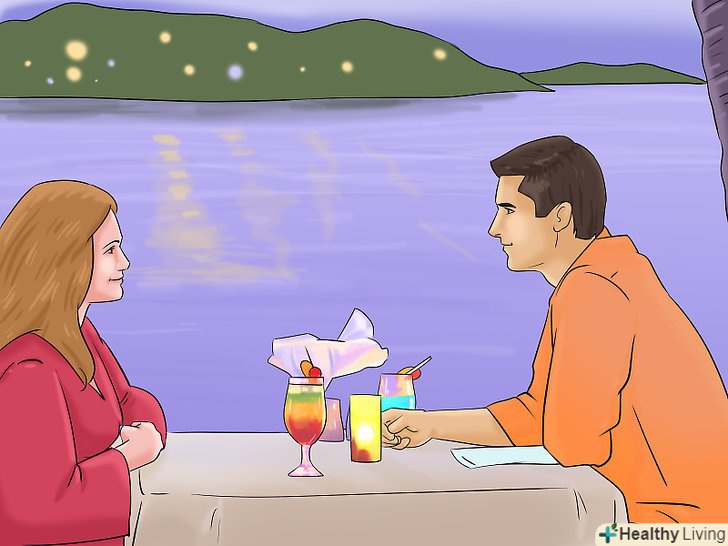 Плануйте побачення з урахуванням її інтересів.важливо не тільки продовжувати ходити на побачення зі своєю дружиною, щоб підтримувати романтичні почуття, але також і брати до уваги інтереси дружини, плануючи такі заходи. Так ви проявите увагу до її інтересам і прийміть в них участь.[9]- Плануючи вечерю в ресторані, не забудьте врахувати улюблену кухню дружини.