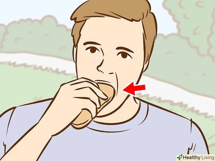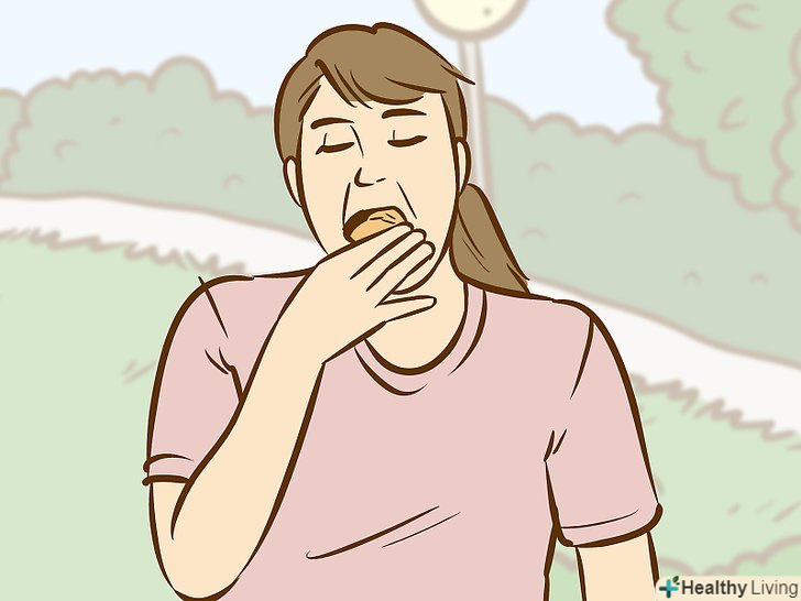 Стрибайте на місці, щоб ковтати швидше.якщо вам можна вставати і рухатися, використовуйте цю можливість, щоб прискорити проковтування. Але стежте за тим, щоб це не заважало вам брати їжу і кусати її. [23]- Робіть це тільки в тому випадку, якщо це допомагало вам ковтати швидше під час тренувань.