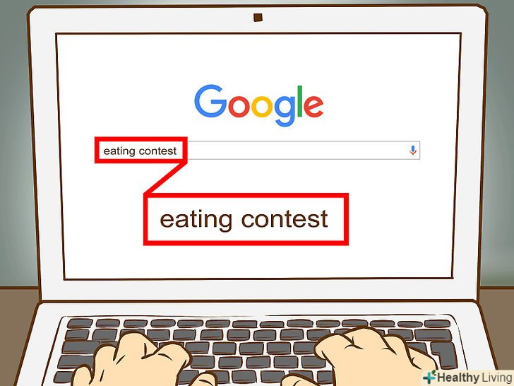 Виберіть змагання.пошукайте в Інтернеті змагання в своєму регіоні або в найближчому Великому Місті. Виберіть конкурс, де буде використовуватися їжа, яка Вам подобається, оскільки так вам буде простіше готуватися і брати участь в конкурсі. Вирішіть, в чому ви будете змагатися: в швидкості, в кількості з'їденого або в чомусь ще.- У більшості конкурсів потрібно з'їсти максимальну кількість їжі за короткий проміжок часу. Це означає, що вам потрібно буде тренуватися їсти багато їжі якомога швидше.