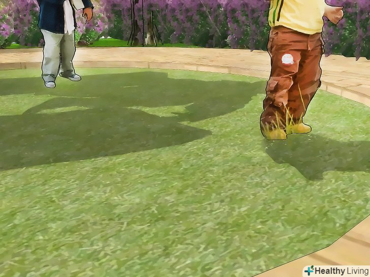 Одягайте дитину.влітку одягайте дитину в легку світлий одяг, яка закриває більшу частину тіла: Легка футболка з довгим рукавом і довгі штанці підійдуть найкраще. Також не забувайте надіти шкарпетки і панамку з широкими полями.[9] легкі бавовняні або лляні речі підійдуть найкраще: вони не тільки вбережуть малюка від укусів комарів, але і захистять від сонця.- Не одягайте дитину занадто тепло, інакше він може перегрітися. У спекотні дні віддавайте перевагу дихаючим матеріалам і одношаровому одязі.