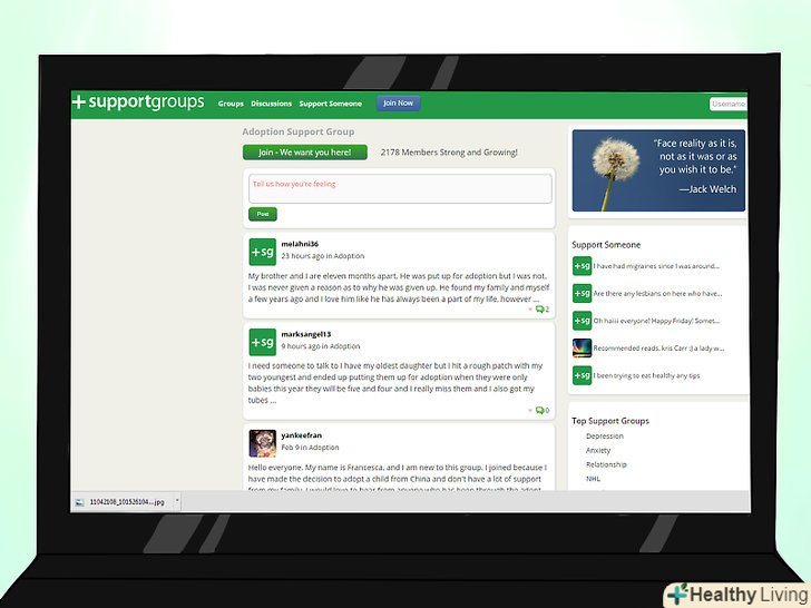 Приєднайтеся до групи підтримки усиновлення у вашій місцевості.багато людей проходять процес відкриття факту, що їх усиновили і щорічно стикаються з цією інформацією. Група підтримки прийомних дітей може допомогти Вам порадою і підкаже джерела для власного розслідування, а також допоможе емоційно впоратися з ситуацією.[11]