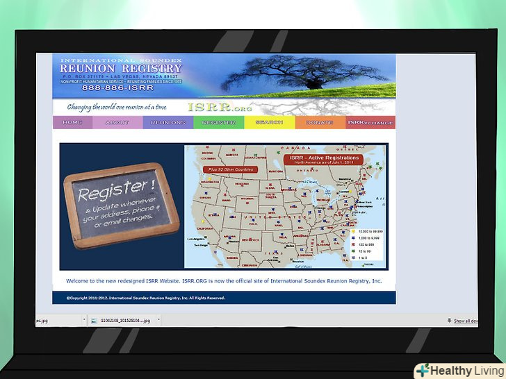 Зареєструйтеся в надійному реєстрі возз'єднання усиновлення. і міжнародний реєстр пошуку возз'єднання і Adoption.com вважаються авторитетними, надійними реєстрами для осіб, які бажають возз'єднатися зі своїми біологічними сім'ями. [13]