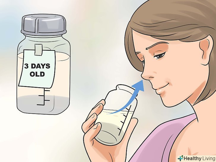 Будьте обережні, якщо молоку вже більше трьох днів.зціджене грудне молоко часто можна зберігати і довше, але на цей термін сильно впливають умови зберігання. Через три дні в холодильнику обережно понюхайте молоко, щоб переконатися, що воно не зіпсувалося.[2]- Крім того, використовуйте молоко з обережністю, якщо воно знаходилося поза холодильником більше трьох годин.[3]