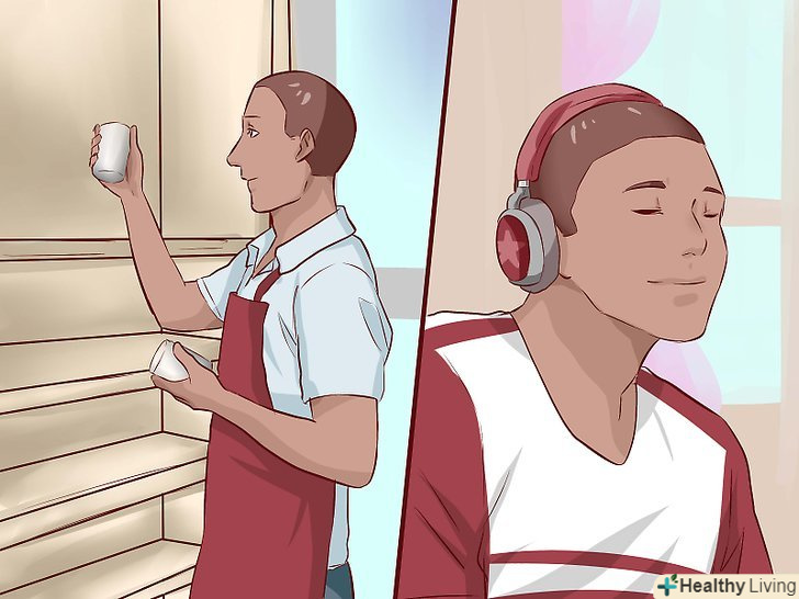 - Добре подумайте про те, що дає вам заспокоєння і робить щасливим. Наприклад, ви можете виявити, що вас заспокоює прослуховування конкретної пісні. Якщо ви відчуваєте себе засмученим, постарайтеся відразу розпізнати власні почуття і зайнятися тим, що вас заспокоює.[23]