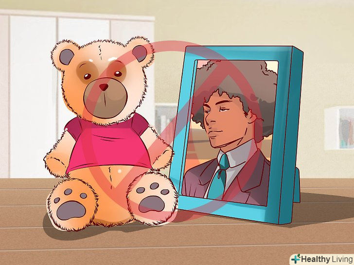 Уникайте всього, що нагадує вам про нього.хоча вам, звичайно, не обов'язково викидати все, якщо абсолютно все вам про нього нагадує. Просто робіть все можливе, щоб уникнути подразників, які напевно змусять вас задуматися про нього, і ви будете сумувати. Відкладіть в сторону диск Macklemore, який він подарував вам на день народження і не ходіть на волейбол після занять, якщо ви знаєте, що він теж там буде. Не ходіть у ваше улюблене кафе або ресторан, якщо все, що вам спадає на думку, — це думати, як вам було там весело разом; замість цього сходіть в нове місце.- Проясніть, що є подразником для вас і розробіть план, як його уникати. Змініть дорогу, якою ви ходите на заняття, щоб не проходити повз місця, де у вас був перший поцілунок.