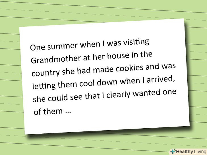 Історії повинні бути конкретними. не соромтеся почати історію прямо з фрази:» я пам'ятаю, коли... «або»одного разу влітку, коли я був в гостях у бабусі..."."