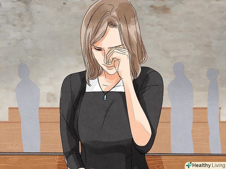 Не стримуйте сліз.якщо ви відчуваєте, що не можете стримати сльози, плачте. Цілком доречно плакати на похоронах. Сльози-це нормальна реакція на горе. Однак якщо ви відчуваєте, що вам не вдається взяти себе в руки, вибачитеся і постарайтеся трохи заспокоїтися.