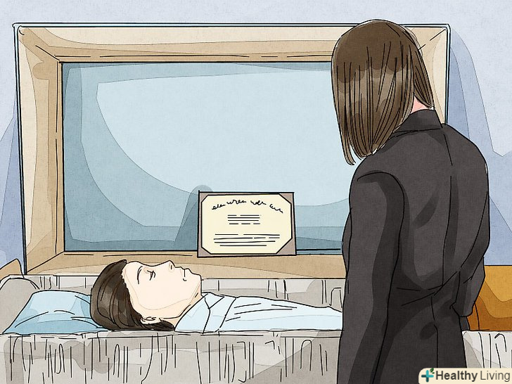 Дивіться на померлого тільки в тому випадку, якщо ви можете впоратися зі своїми почуттями та емоціями.на деяких похоронах труну відкрито, і всі прийшли можуть бачити померлої людини. Якщо вам складно, ви можете не підходити до труни близько. Якщо ви хочете підійти до відкритого труни, але вам здається, що ви не впораєтеся зі своїми емоціями, попросіть когось підійти разом з вами.[8]