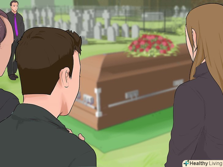 По можливості відвідайте похорон.незважаючи на те, що це важка подія, відвідування похорону також сприяє подоланню горя і дозволяє прийняти той факт, що дідусі або бабусі більше не буде поруч. Перебуваючи на похоронах разом зі своєю сім'єю, ви зможете відчути підтримку і спорідненість в загальному переживанні горя.[4]- Батьки можуть запитати дитину, чи не хоче він поїхати на похорон, щоб вшанувати життя покійного родича. Подібна пропозиція дозволить дитині прийняти рішення, чи готовий він поїхати туди. Найчастіше діти вибирають бути присутнім на похоронах, щоб попрощатися з дідусем або бабусею.