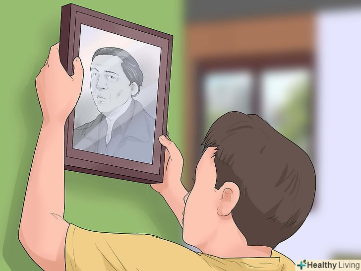 Створіть свій власний Меморіал В пам'ять про бабусю або дідуся.іноді буває корисно створити фізичний вираз пам'яті про пішов родича. Це може бути колекція фотографій або портрет в рамці. Можна повісити його на особливе місце в будинку або в своїй кімнаті, щоб пам'ять назавжди залишилася з вами.[6]