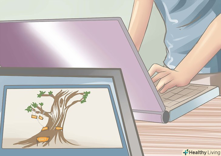 Використовуйте програмне забезпечення, щоб створити дерево в комп'ютері.якщо ви хочете, щоб Ваше генеалогічне дерево виглядало візуально привабливо, але воліли б не ілюструвати його самостійно, то є сотні варіантів, які можна вибрати в Інтернеті. Знайдіть в пошуковику" порожню Родовід", в якій можна придумати шаблон або в довільному порядку її роздрукувати і повісити на своїй стіні.