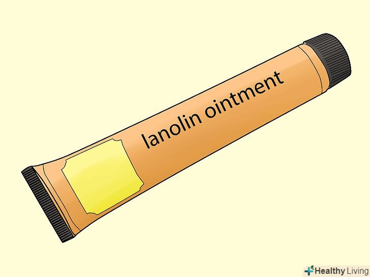 Обробіть уражену ділянку.для цього можна використовувати медичну мазь з тваринного воску, яка полегшить дискомфорт.- Компанія "Lanoish" - єдина схвалена марка продуктів для годуючих матерів, тому що продукція не містить певних хімікатів, які використовуються в інших мазях. Мазь наноситься на пошкоджені соски і сприяє лікуванню вологих ран. Крім того, її не потрібно змивати перед годуванням.