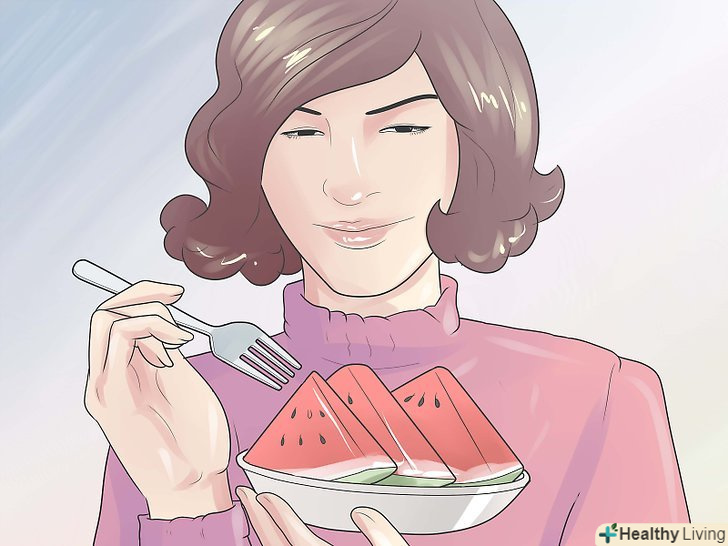 Їжте соковиті фрукти.уникнути зневоднення і в той же час отримувати хороші поживні речовини можна збільшивши в раціоні соковиті фрукти і овочі. При зменшенні навколоплідних вод підійдуть такі фрукти і овочі: [7]:- Овочі: огірок (містить 96,7% води), листя салату (95,6%), селера (95,4%), редис (95,3%), зелений болгарський перець (93,9%), цвітна капуста (92,1%), шпинат (91,4%), брокколі (90,7%) і молода морква (90,4%).
