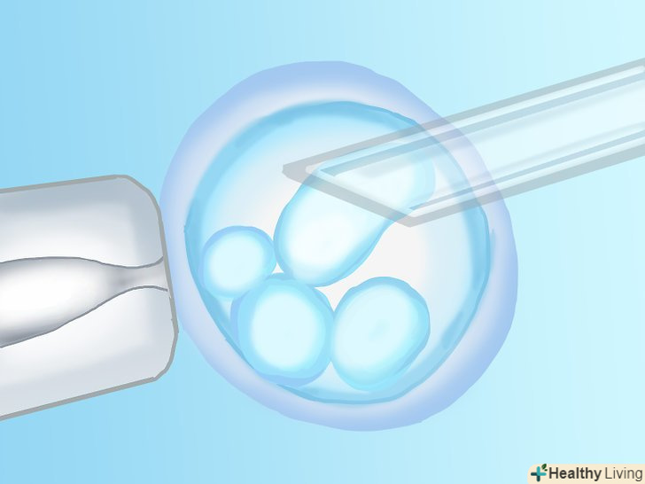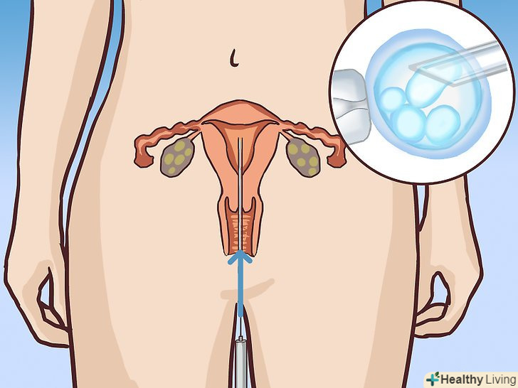 Дозвольте помістити ембріон з лабораторії у вашу матку.часто лікар імплантує більше одного ембріона, щоб максимально підвищити шанси на успішне зачаття (в надії, що після приміщення в матку, принаймні, один з ембріонів успішно приживеться і почне розвиватися).- Ускладненням екстракорпорального запліднення є підвищена ймовірність двійні, трійні або навіть більшої кількості дітей. Поговоріть зі своїм лікарем про те, скільки ембріонів він рекомендує імплантувати у Вашому конкретному випадку. Це буде залежати від цілого ряду факторів, характерних для кожної пари, включаючи вартість (якщо процедура виявиться невдалою і буде потрібно повторна, то це буде дорого), а також інші "фактори фертильності", які будуть оцінені вашим лікарем.[18]