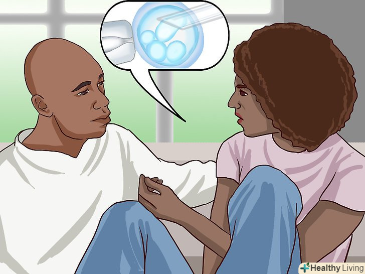 Вирішіть, наскільки далеко ви готові зайти.необхідно обговорити зі своїм партнером такі речі як вартість, зусилля і гроші, які ви готові вкласти, перш ніж робити які-небудь кроки, щоб завагітніти.- Деякі процедури (наприклад, екстракорпоральне запліднення) можуть бути дуже дорогими, тому необхідно знати, як далеко готові зайти заради вагітності ви і ваш партнер.[5]