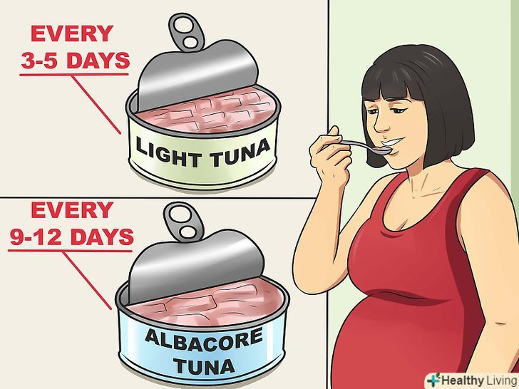 Зосередьтеся на видах риб з найнижчим рівнем ртуті.анчоуси, масляна риба, сом, камбала, пікша, оселедець, окунь, сайди, лосось, сардини, Європейська солея, тілапія, форель, біла риба і мерланг є одними з найбезпечніших видів риби для вагітних. Ці види риб безпечно вживати два рази на тиждень по 170 г (6 унцій) вагітним жінкам. Банку консервів з тунця можна сміливо вживати кожні 3-5 днів, а консервований довгоперий тунець безпечно споживати раз в 9-12 днів.