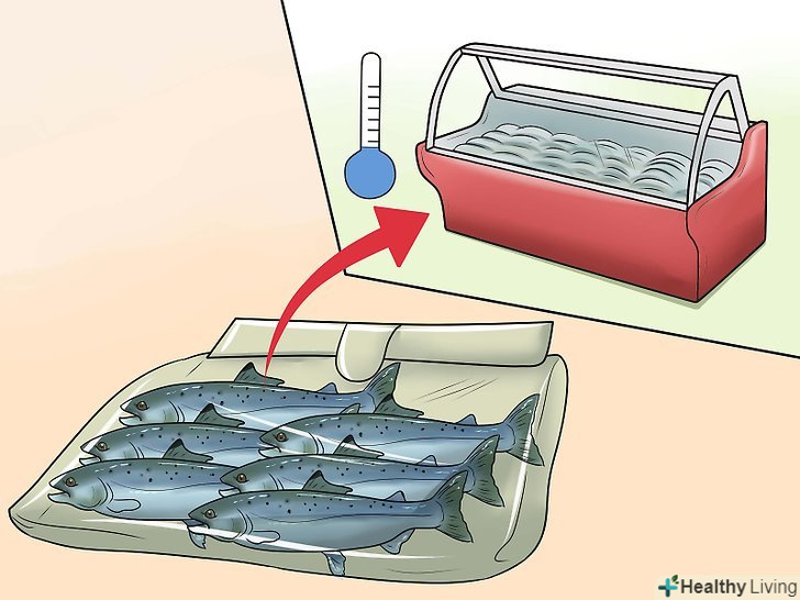 Переконайтеся в належному зберіганні риби перед покупкою. якщо риба транспортується, зберігається і очищається не належним чином, в ній можуть міститися хімічні речовини або хвороби, що поширюються через травний тракт, які можуть піддати вас і вашої дитини, що розвивається ризику захворювань.- Купуйте тільки свіжу охолоджену рибу або рибу в прісному льоду. Риба повинна бути дуже холодною, щоб вона не зіпсувалася, і повинен бути передбачений водовідведення.