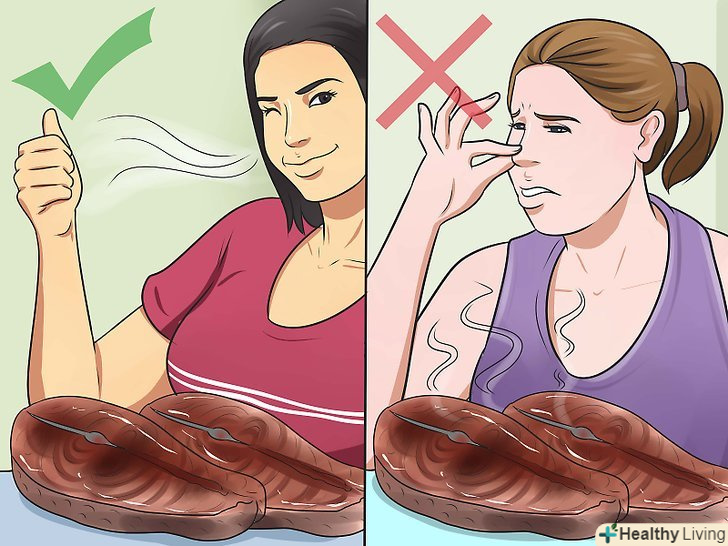 Не їжте рибу з сильним запахом.рибу з сильними рибним, кислим запахом або з запахом аміаку не варто їсти. Готуйте рибу, якщо у неї м'який і свіжий запах.