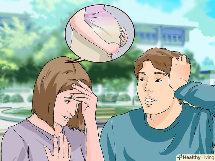 Обміркуйте всі можливі варіанти.вам потрібно буде обговорити всі варіанти зі своїм хлопцем. Дізнавшись про вагітність, вам потрібно буде вирішити, що ви будете робити далі. Одним з варіантів є збереження дитини і догляд за ним.[9]- Подумайте, як зміниться ваше життя і життя вашого партнера, якщо ви вирішите залишити дитину. Чи готові ви до цього емоційно і чи є у вас фінансові ресурси? Чи хочете ви цього?