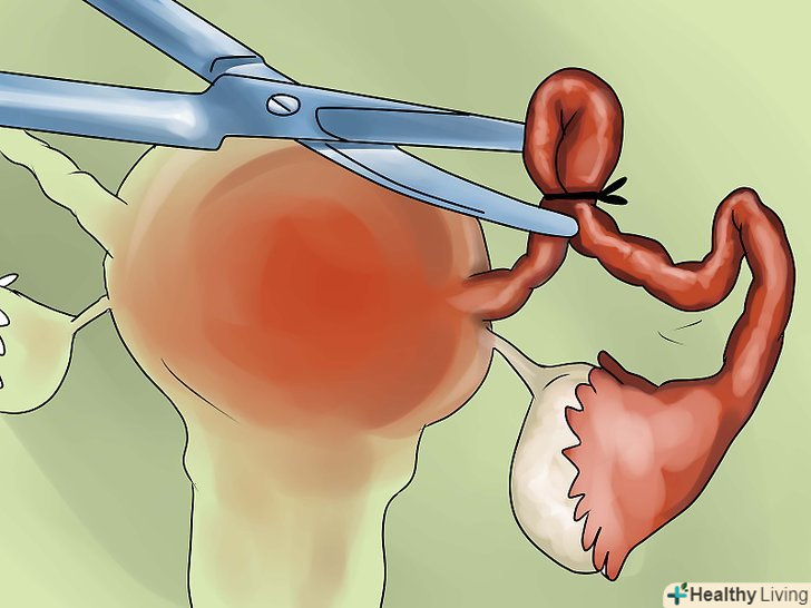 Пройдіть хірургічну стерилізацію.хірургічну стерилізацію зазвичай називають перев'язуванням маткових труб. При цій операції фаллопієві труби перев'язують або перерізають.[15]- Чоловіча стерилізація називається вазектомією. При цій операції перерізають або перев'язують сім'явивідні протоки, через які сперма з яєчок переноситься до пеніса. Так, сперма поглинається організмом, а не виводиться назовні.[16]