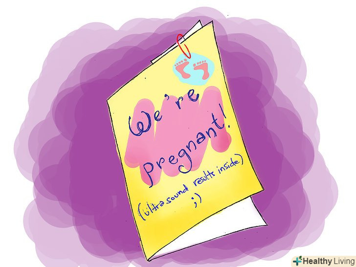 Зробіть свою заяву, використовуючи соціальну мережу.якщо у вас є аккаунт в Фейсбук або в контакті, ви можете поділитися новинами, Розмістивши на стіні оголошення про вагітність або своє фото, де видно, що ви вагітні. Деякі пари виставляють фото першої сонограми. Є багато творчих шляхів поділитися новиною, просто будьте собою!- Майте на увазі, що як тільки ви розмістите цю інформацію публічно, немає ніякого контролю за тим, хто дізнається. Не публікуйте свою новину, поки не будете точно готові до того, щоб дізналися всі.