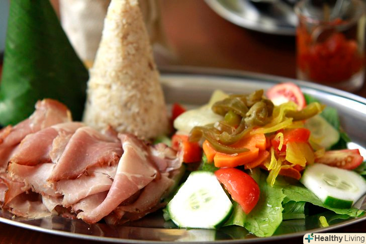 Включайте в свій раціон зернові продукти. Вуглеводи – основне джерело енергії людини. Продукти з цільного зерна повинні бути невід'ємною частиною вашого раціону. Близько 50% від загального споживання зернових продуктів повинні складати продукти з цільного зерна, наприклад, макарони, рис або хліб. Ви можете купувати хліб і крупи з додаванням вітамінів, заліза, клітковини, мінералів і фолієвої кислоти. [7]- Наприклад, на перший прийом їжі ви можете з'їсти зерновий сніданок, на обід – бутерброд, а на вечерю – макарони з твердих сортів пшениці.[8]