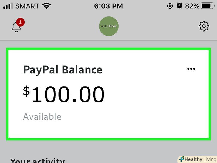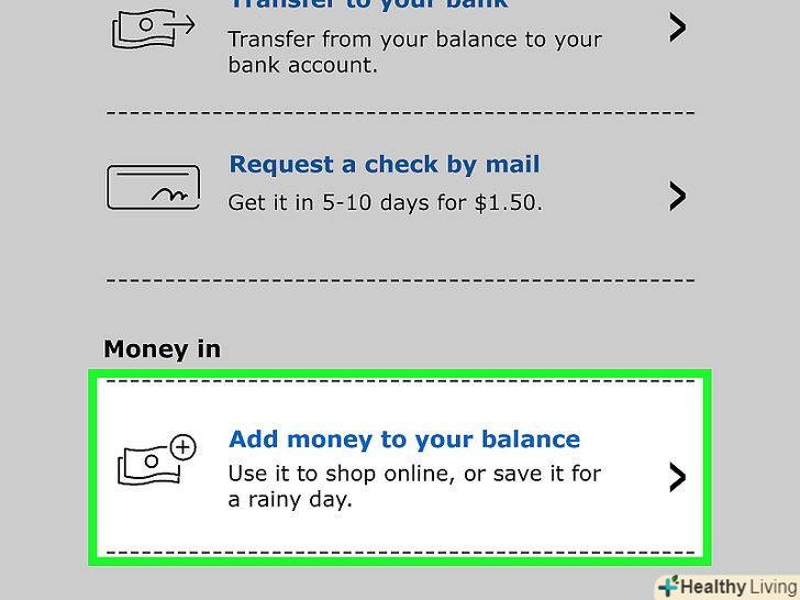Клацніть поПоповнити.ця опція знаходиться в розділі "залишок".- Якщо у вас бізнес-аккаунт PayPal, замість опції «поповнити» відобразяться два меню: в першому меню «звідки» виберіть свій банківський рахунок, а в другому меню «Куди» виберіть «залишок PayPal».