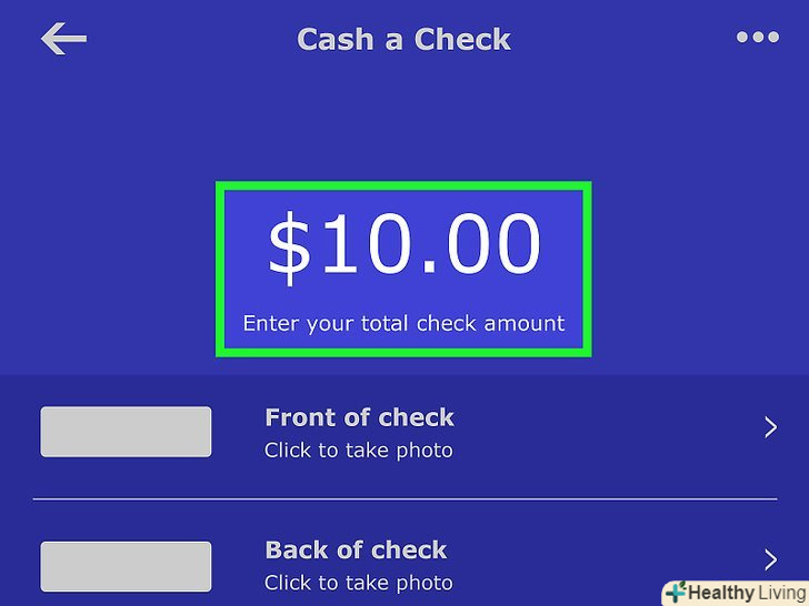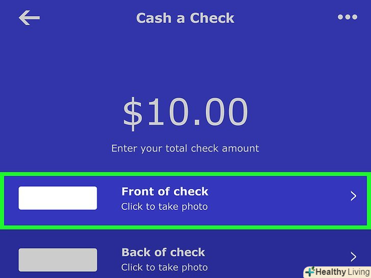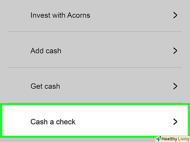 НатиснітьПеревести в готівку чек (Cash a Check).на екрані з'являться короткі інструкції.[3]