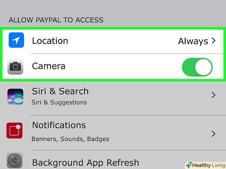 Надайте додатку Paypal доступ до геолокації і камері.для цього дотримуйтесь інструкцій на екрані. Відкриється текст Політики конфіденційності.
