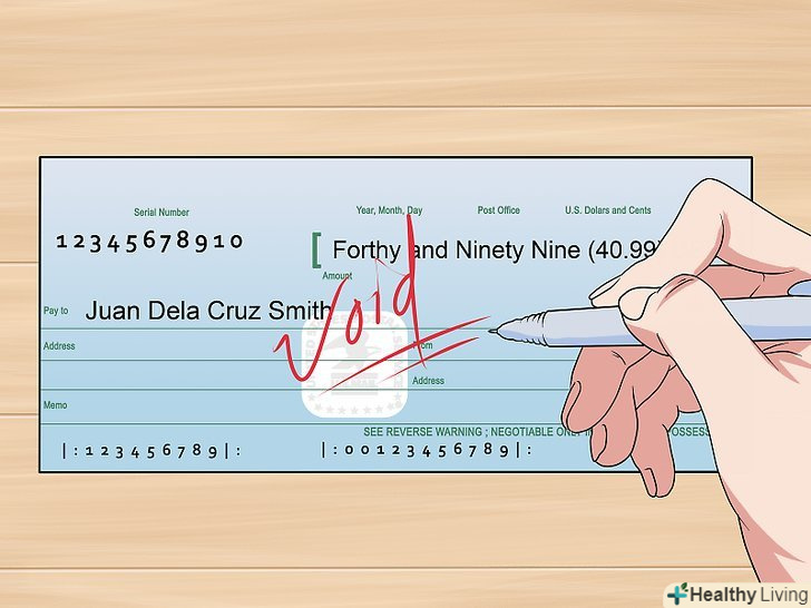 Анулюйте чек і надайте докази. не анулюйте чек, поки програма не запропонує вам зробити це. Тепер маркером напишіть слово "VOID" (анульований) на лицьовій стороні чека, а потім дотримуйтесь інструкцій на екрані, щоб зробити нову фотографію чека. Коли процес завершиться, на екрані з'явиться підтвердження.