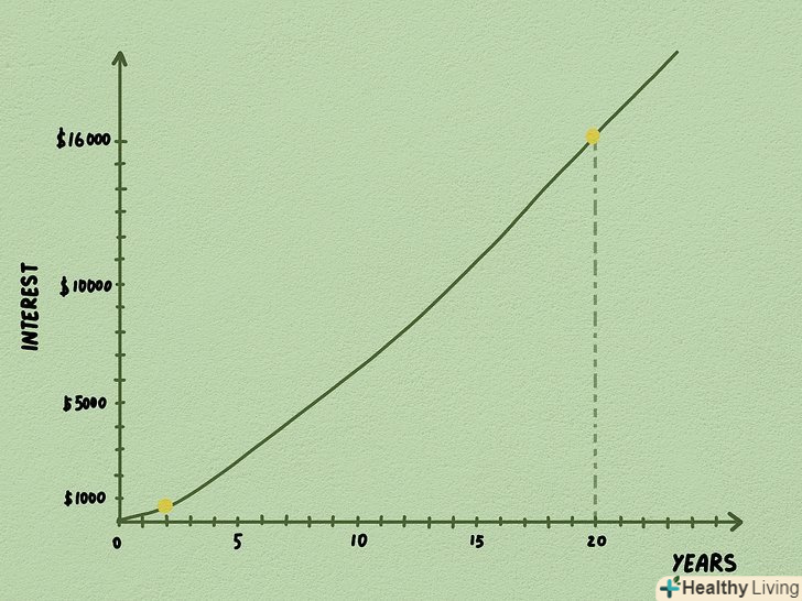 Розширте свої розрахунки.щоб більш наочно уявити собі переваги складних відсотків на поповнюваному депозиті, припустіть, що ви будете продовжувати вносити кошти на рахунок не два роки, а двадцять років. В такому випадку в майбутньому на вкладі виявиться сума близько $45000, незважаючи на те, що самі Ви внесете на рахунок тільки $29000. Іншими словами, ви заробите $ 16000 у вигляді відсотків.