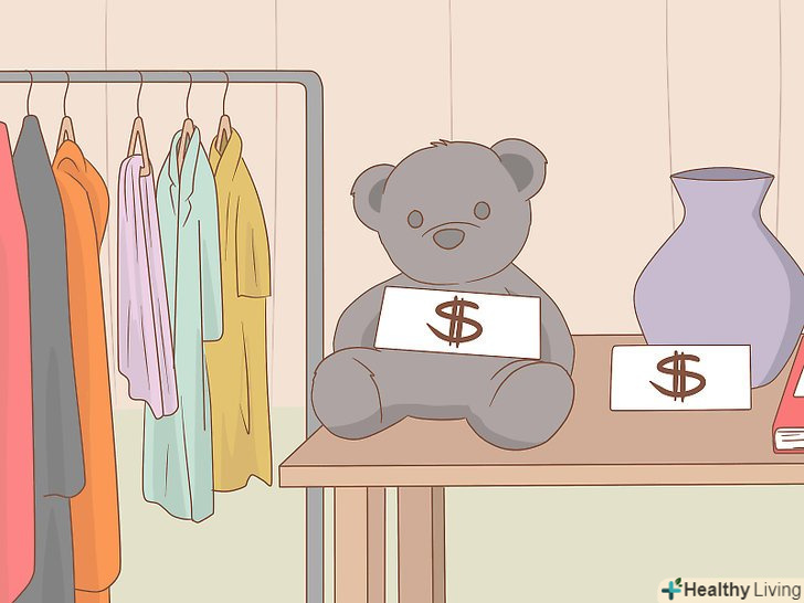 Влаштуйте розпродаж, щоб позбутися від непотрібних речей.наведіть порядок у своїй кімнаті і складіть всі іграшки, прикраси та речі, які вам вже не потрібні. З дозволу батьків розмістіть їх на розкладному столі у дворі або перед хвірткою. Використовуйте наклейки, щоб зробити цінники. Визначайте ціни з урахуванням первісної вартості і нинішнього стану кожного предмета.[4]- Найкраще проводити розпродаж вранці у вихідний день. Саме в цей час можна залучити найбільшу кількість відвідувачів.