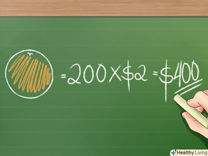 Знайдіть загальну виручку від продажу товарів за новою (імовірно нижчою) ціною.для цього помножте кількість проданого товару на ціну за його одиницю.- У нашому прикладі, загальна виручка від продажу 201 банок апельсинового напою по $1,95 за банку дорівнює: 201 х 1,95 = $391,95.