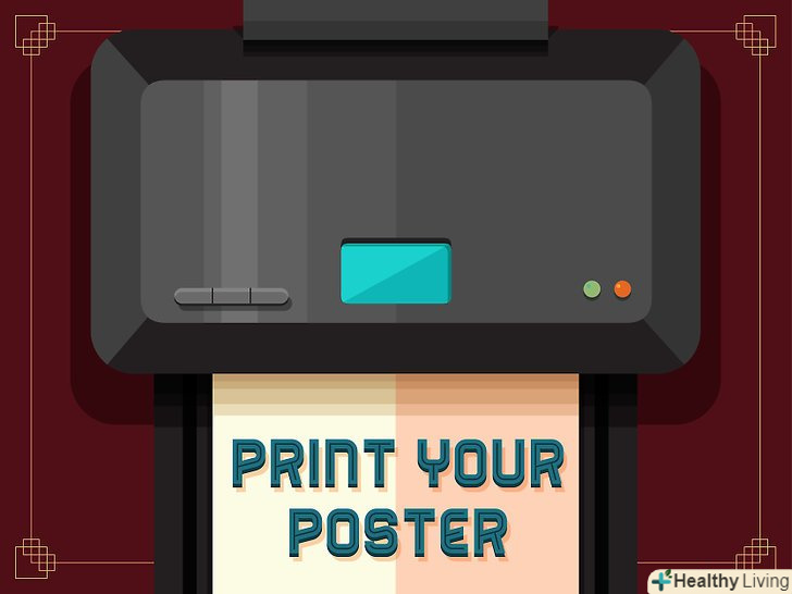Надрукуйте плакат.після створення потрібного дизайну у вас з'явиться кілька варіантів на вибір. Ви можете роздрукувати плакат з домашнього комп'ютера, якщо у вас обмежений бюджет. Пам'ятайте, що комп'ютерний папір не дуже міцна, а кольори і зображення не будуть виглядати найкращим чином. У поліграфічних майстернях використовують більш міцний папір, що зробить ваш плакат більш помітним. Друк плаката може коштувати дуже дорого, тому враховуйте свої фінансові можливості. Виберіть відповідний варіант в залежності від вашої ситуації.