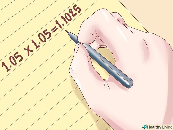 Помножте результат на множник, рівний частоті зачаслений відсотків. у нашому прикладі, це 1,05 x 1,05 = 1,1025.