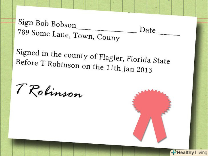 Залиште місце для нотаріуса. місце для нотаріуса повинен включати в себе область і адміністративний округ, заява, що учасники добровільно підписали Угоду в присутності нотаріуса, місце для дати, лінія для підпису нотаріуса, і великий простір для друку нотаріуса.