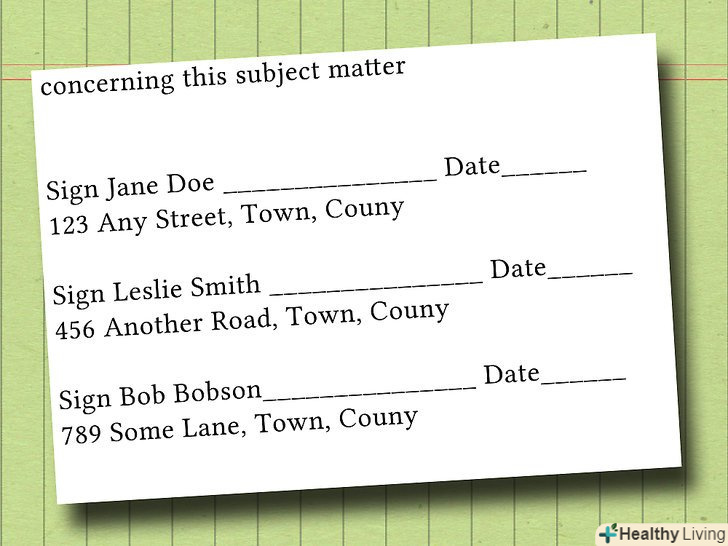 Залиште місце для підписів.місце для підписів повинно включати в себе лінії для підпису кожного учасника договору, дату, і надруковані імена, адреса і телефон кожного з учасників, під лінією для підпису.