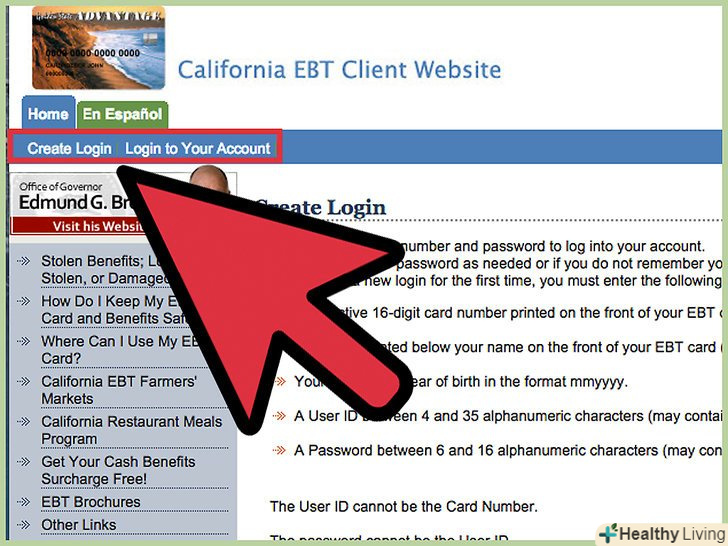 Створіть обліковий запис або увійдіть.точна схема сайту залежить від вашого штату. Знайдіть посилання "Реєстрація", "Створити обліковий запис" або подібну фразу. Якщо ви не можете її знайти, просто натисніть на командну кнопку" вхід " - на деяких сайтах не потрібно реєструватися, досить просто ввести номер вашого соціального страхування та / або номер карти.