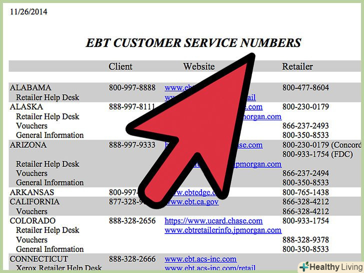 Перевірте свій баланс через службу підтримки клієнтів.якщо у вашому штаті немає обслуговування SNAP (продовольчі талони) через Інтернет, зверніться до служби підтримки клієнтів і попросіть їх перевірити ваш баланс або дати пораду, як можна перевірити його у вашому штаті. На сайті Міністерства сільського господарства США ви можете знайти номери для безкоштовних дзвінків, а також сайти, на яких клієнти обслуговуються через Інтернет.- Зателефонуйте за номером, вказаним у розділі "клієнт", щоб дізнатися свій баланс. У розділі "роздрібні магазини" вказані номери магазинів, які приймають продовольчі талони в якості оплати.