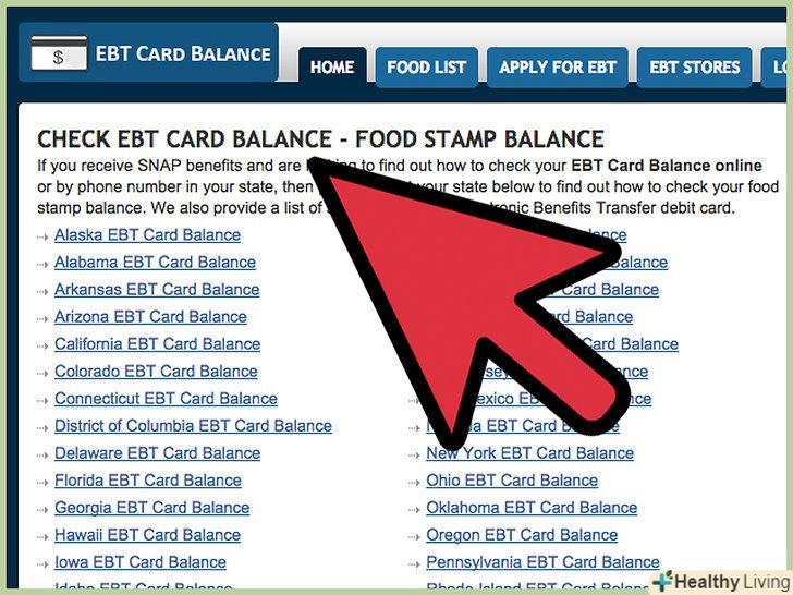 Дізнайтеся, чи можливо це у вашому штаті.відвідайте в Інтернеті сторінку EBT SNAP http://www.fns.usda.gov/ebt/online-ebt-snap-accounts. натисніть на посилання поруч з штатом, який видав вам картку для допомоги, якщо він з'являється в списку.- Якщо вашого штату немає в списку, то скористайтеся одним з методів запропонованих нижче.