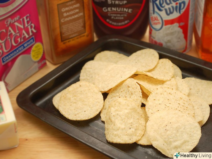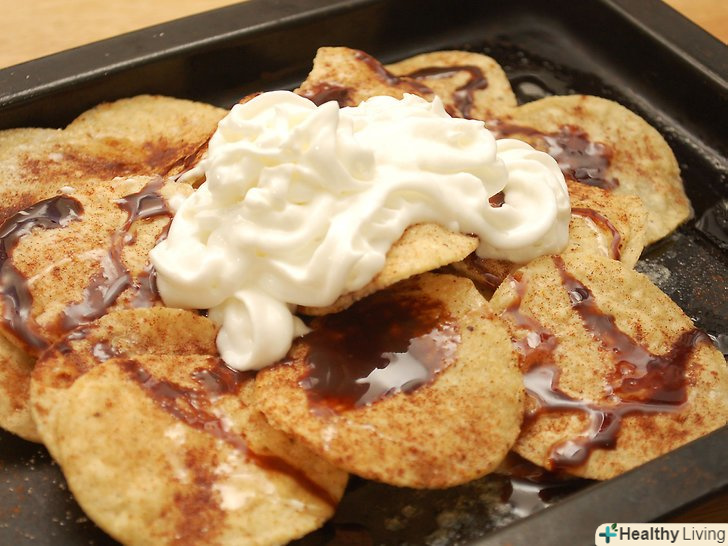 Зберіть інгредієнти.десертні начос чудово підійдуть в якості заключного страви на мексиканському тематичному вечері. Аромат кориці і цукру виявить кращі якості чіпсів. Вам будуть потрібні наступні інгредієнти:- Борошняні чіпси. Чим свіже, тим краще; легкі і хрусткі. Спробуйте знайти несолені чіпси, хоча контраст солоного і солодкого теж може бути цікавий.[3]