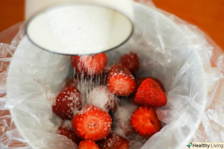 Посипте хорошим цукром і упакуйте в пластикові контейнери або пакети.- Використовуючи цей метод, полуницю можна заморозити на термін до 6 місяців.